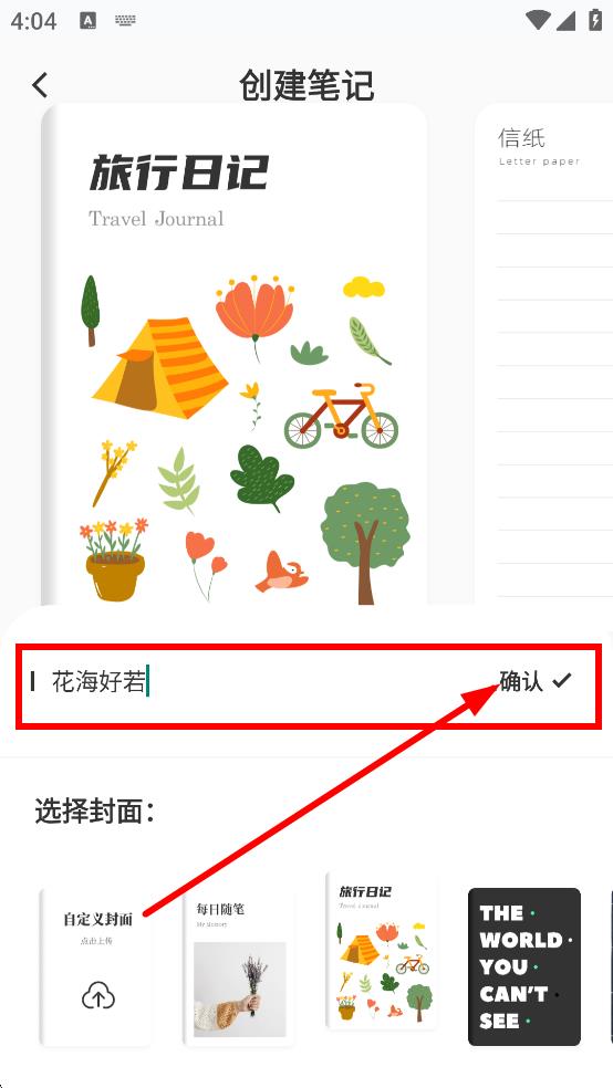 3、在創(chuàng)建筆記界面,輸入筆記內(nèi)容后,點(diǎn)擊確認(rèn),完成筆記創(chuàng)建。