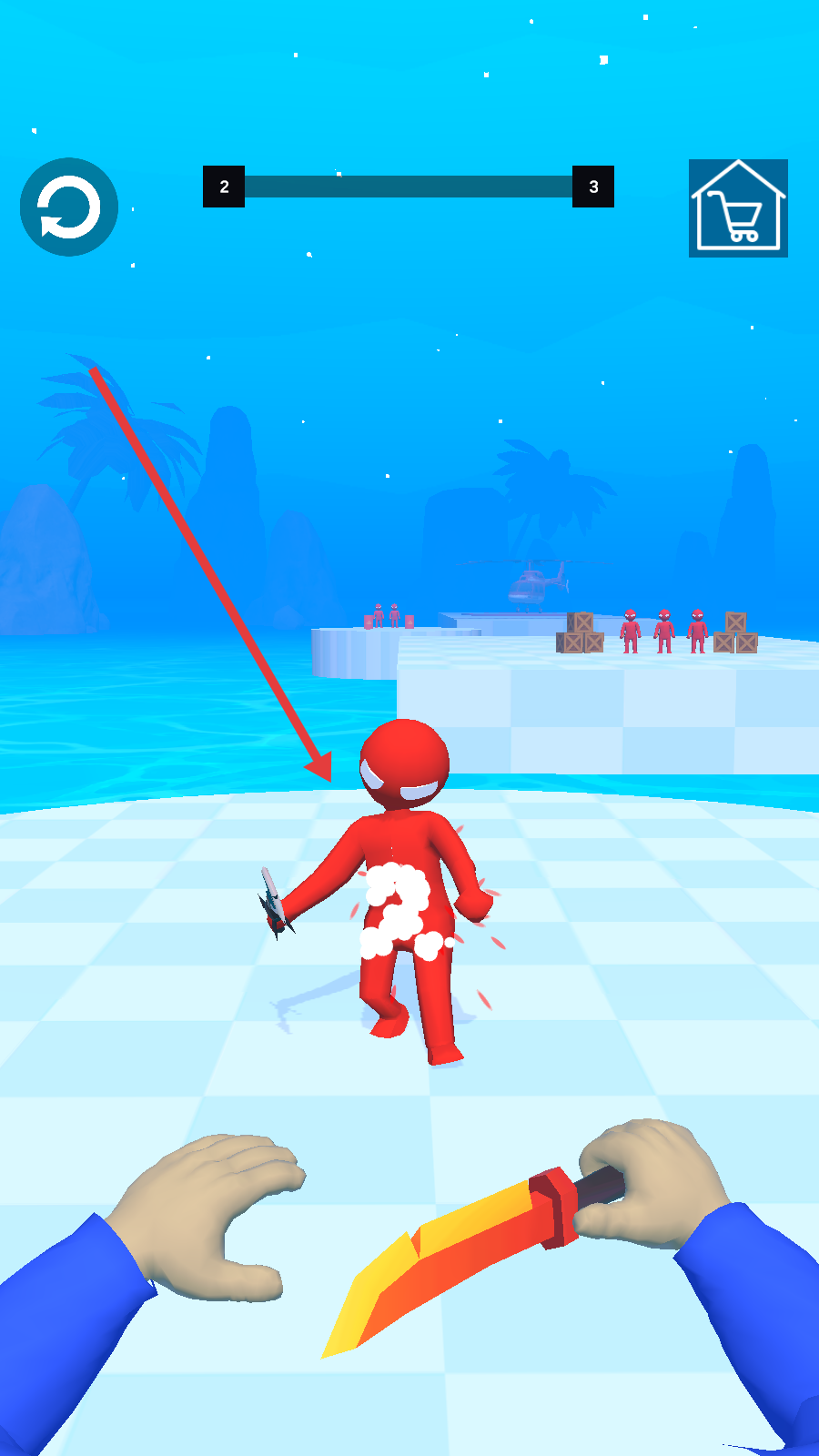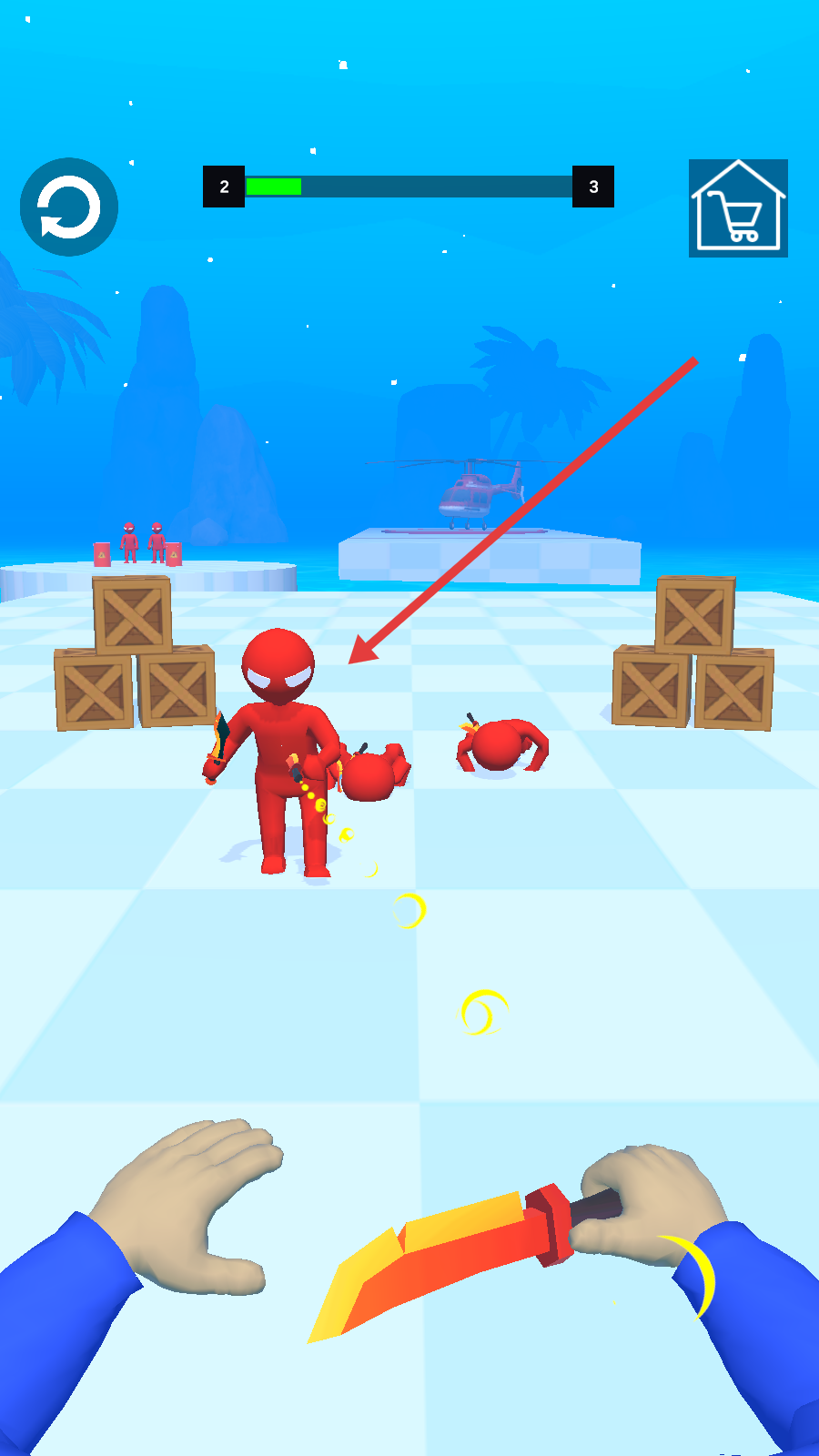 1、進(jìn)入關(guān)卡,靠近身著紅裝的敵人,點(diǎn)擊手中武器發(fā)起攻擊,同時(shí)注意躲避其反擊,推進(jìn)進(jìn)度條。