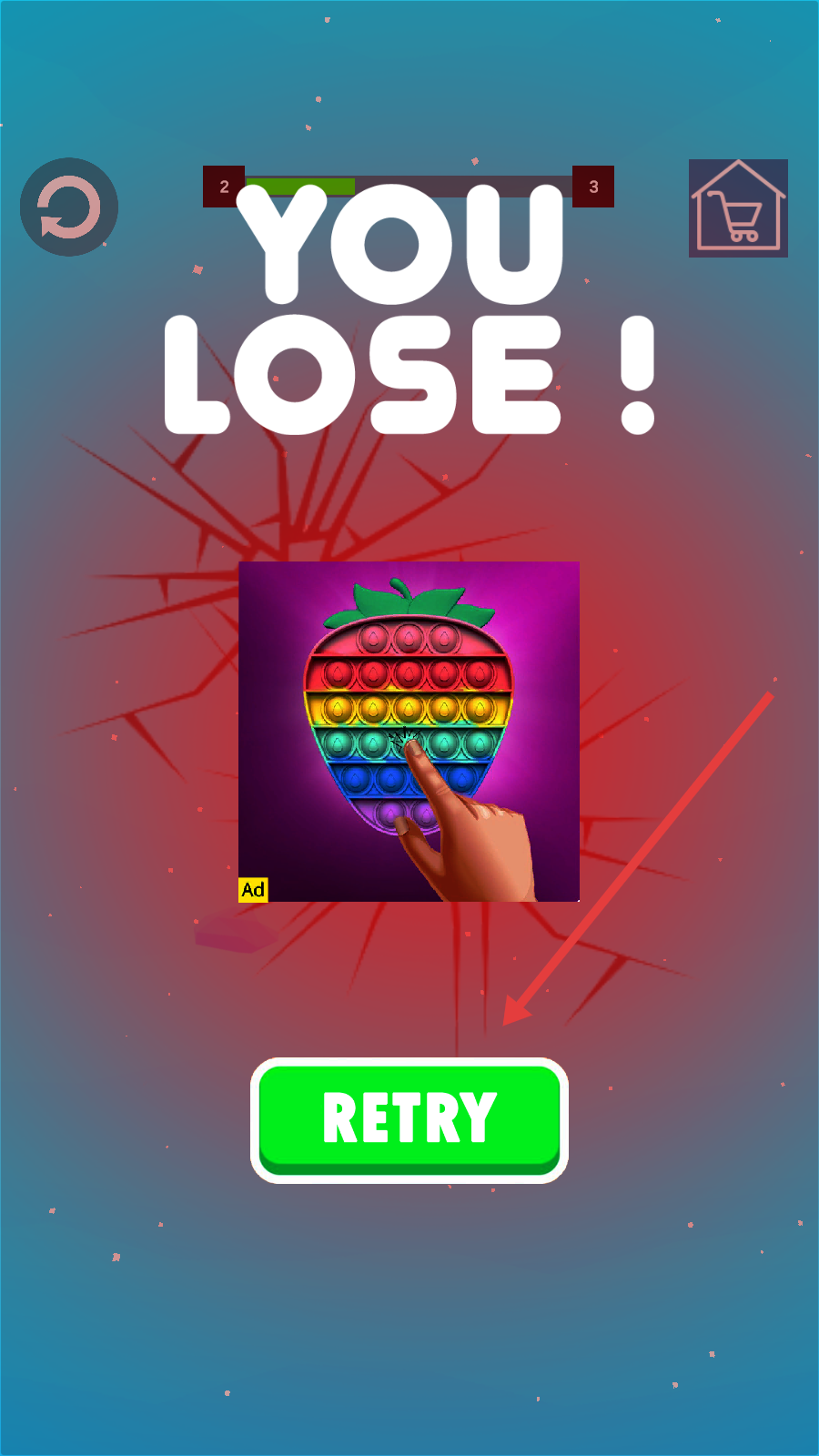 3、若挑戰(zhàn)失敗,點(diǎn)擊綠色RETRY按鈕重試,調(diào)整策略,精準(zhǔn)把控攻擊時(shí)機(jī),爭(zhēng)取通關(guān)。
