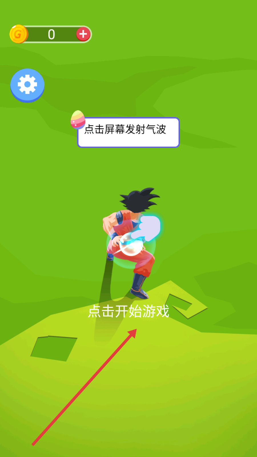 1、點(diǎn)擊主界面點(diǎn)擊開(kāi)始游戲按鈕,進(jìn)入跑酷戰(zhàn)斗場(chǎng)景,遇到敵人時(shí)點(diǎn)擊屏幕,發(fā)射氣波擊飛目標(biāo)。