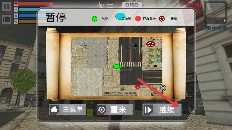 2、角色成長體系:隨著游戲推進,玩家能通過完成任務、積累經(jīng)驗提升角色能力,如提升乞討成功率的口才技能,提高翻找效率的拾荒技能,實現(xiàn)質量蛻變。