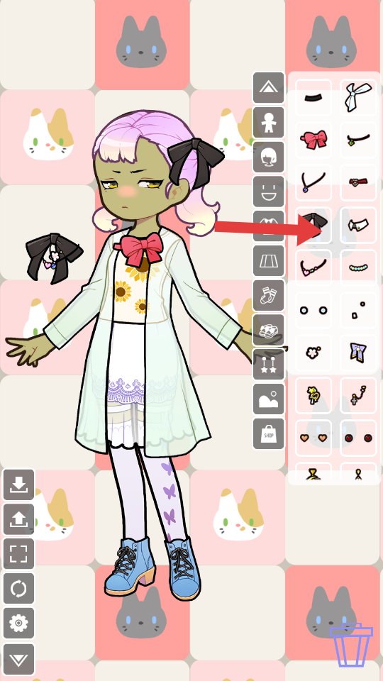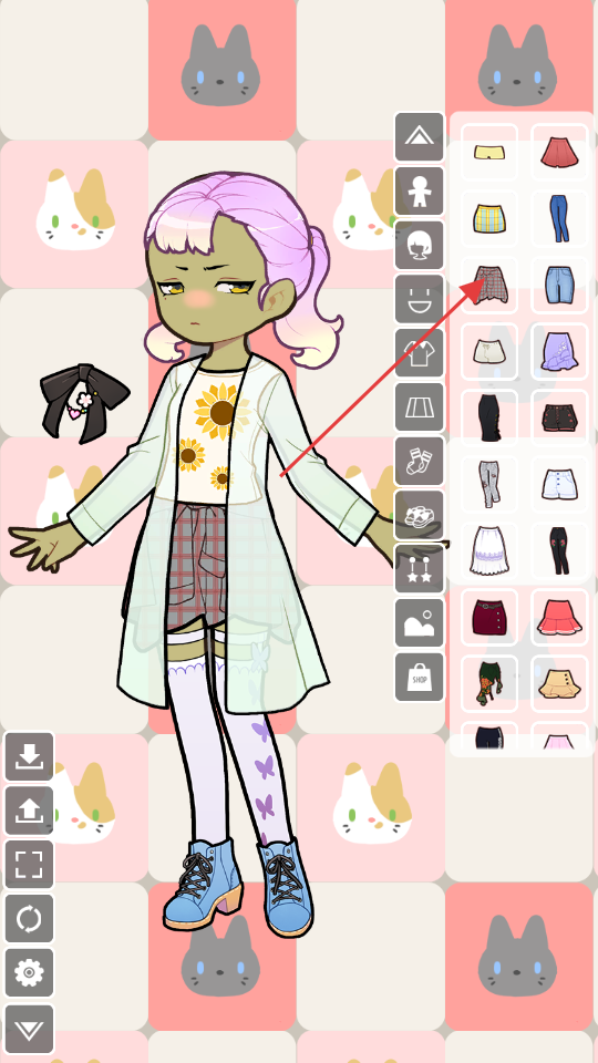 2、切換下裝、配飾的分類,挑選適配的穿搭如格紋短褲、蝴蝶結(jié)領(lǐng)結(jié),要搭配出獨特的風(fēng)格。