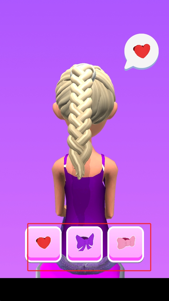 3、發(fā)型編織完成,根據(jù)角色頭上愛心提示,從下方裝飾中選對(duì)應(yīng)愛心飾品,點(diǎn)擊為發(fā)型增添裝飾,完成關(guān)卡。