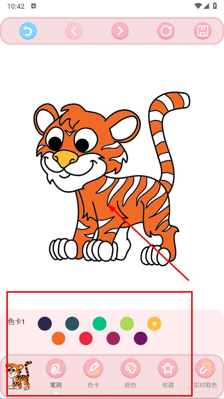 1、兒童趣味填色啟蒙:引導(dǎo)孩子選擇卡通線稿模板,使用填色功能自主選擇顏色填充,通過色彩搭配鍛煉審美能力,簡(jiǎn)單操作建立繪畫信心,培養(yǎng)對(duì)色彩的敏感度。