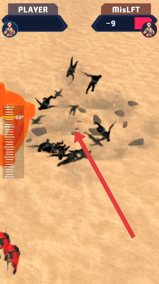 2、面對成片紅色小兵,連續(xù)點擊開槍鍵進行火力覆蓋,利用密集射擊擊退集群敵人,不要讓小兵靠近己方的陣地。