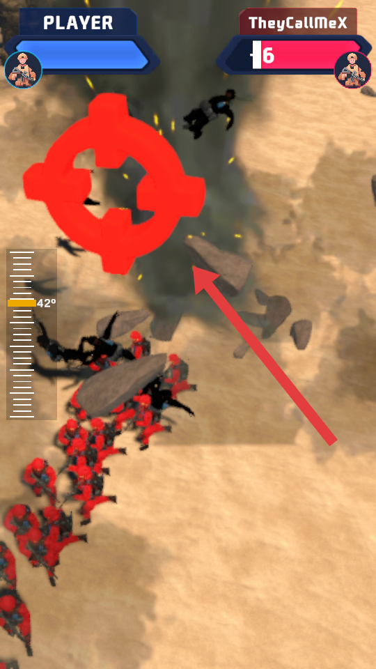 3、看到場景里的炮臺,趕緊搶占操控,操控后瞄準敵方進軍路線,長按開槍鍵蓄力,釋放炮擊攔截敵軍,把控節(jié)奏。