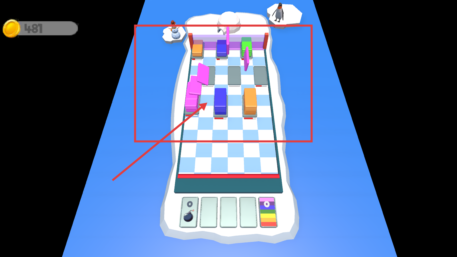 2、中期整合【粉色方塊】,填補(bǔ)棋盤空格優(yōu)化堆疊,緊盯左上角【481】金幣增幅,逐步擴(kuò)大領(lǐng)地優(yōu)勢(shì)。