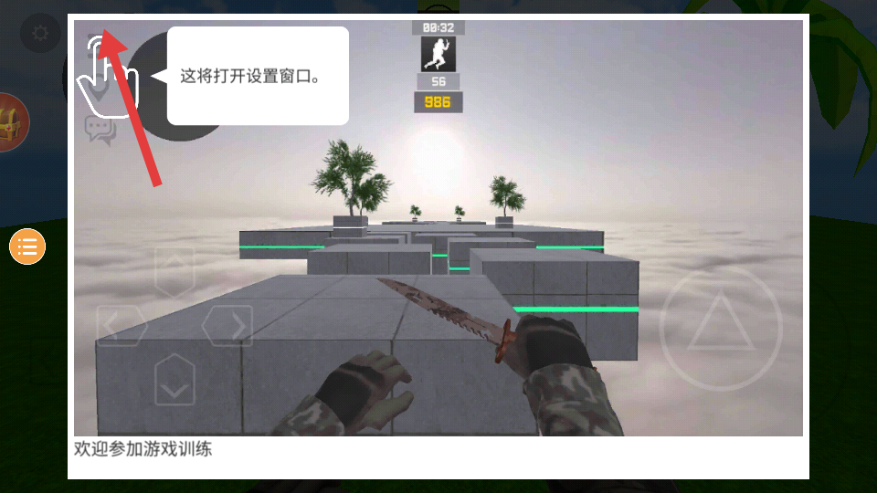 1、進入游戲后選擇初始場景,通過虛擬按鍵掌握鬼跳基礎操作,按跳躍鍵后配合方向鍵,模擬出連貫的鬼跳動作,熟悉角色移動節(jié)奏。