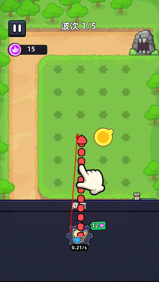2、士兵自動攻擊敵人,拾取金幣,守護路徑,阻止敵人抵達城堡。