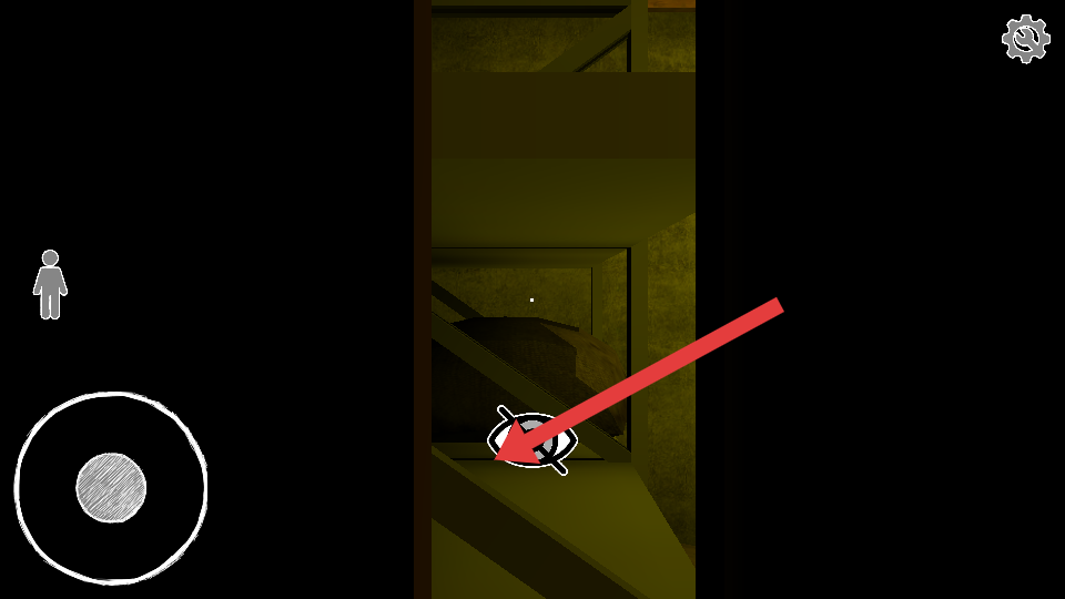 3、進(jìn)入新區(qū)域,遇視野限制眼睛叉號(hào),慢移找掩護(hù)的物體,避開(kāi)紅圈視野的范圍,推進(jìn)通關(guān)。