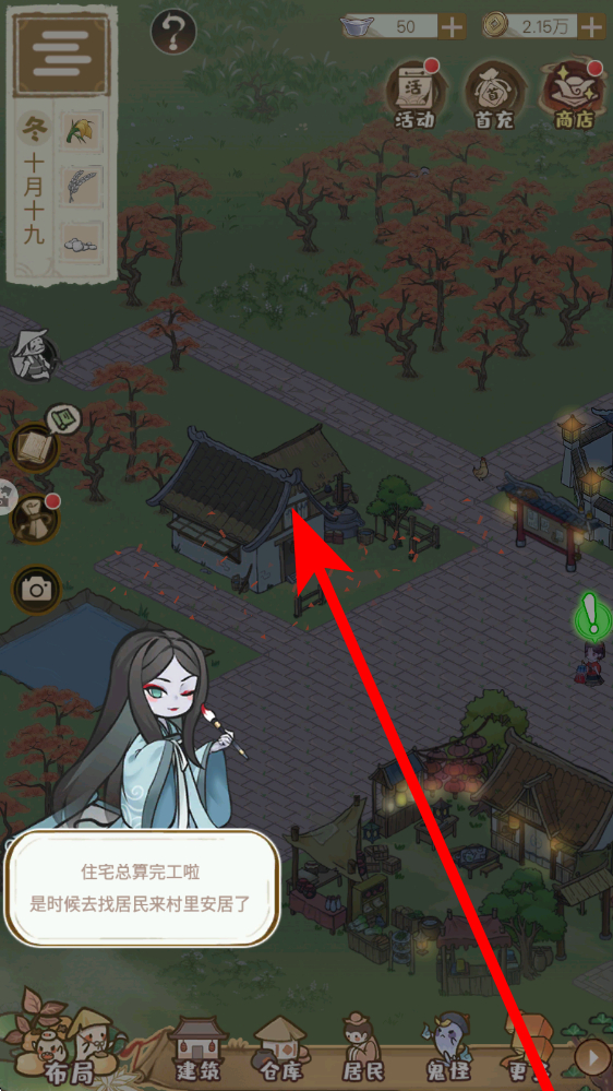 3、居民入駐銜接,住宅完工后彈出提示,前往居民界面招募村民,將其指派至新宅,充實(shí)村落人口,為生產(chǎn)經(jīng)營(yíng)環(huán)節(jié)儲(chǔ)備人力基礎(chǔ)。
