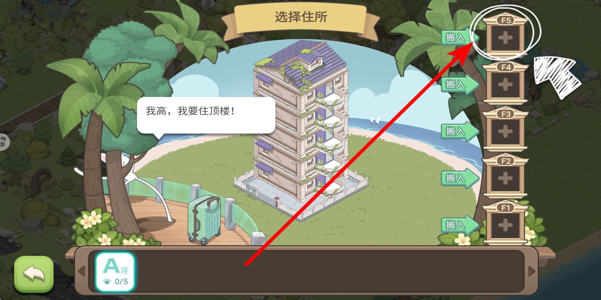1、分配動物住所,進(jìn)入選擇住所界面,點擊樓層搬入按鈕,依據(jù)動物訴求長頸鹿?fàn)庬敇欠峙涔?,提升其滿意度,為后續(xù)工作筑牢基礎(chǔ)。