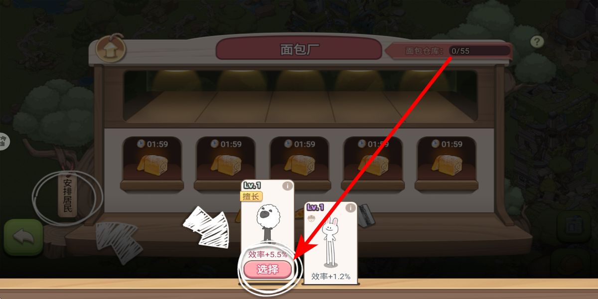 2、工廠安排居民,打開面包廠等生產(chǎn)建筑,查看動物特長綿羊效率加成,點擊選擇指派對應(yīng)動物,優(yōu)化生產(chǎn)效率,加速美食產(chǎn)出節(jié)奏。