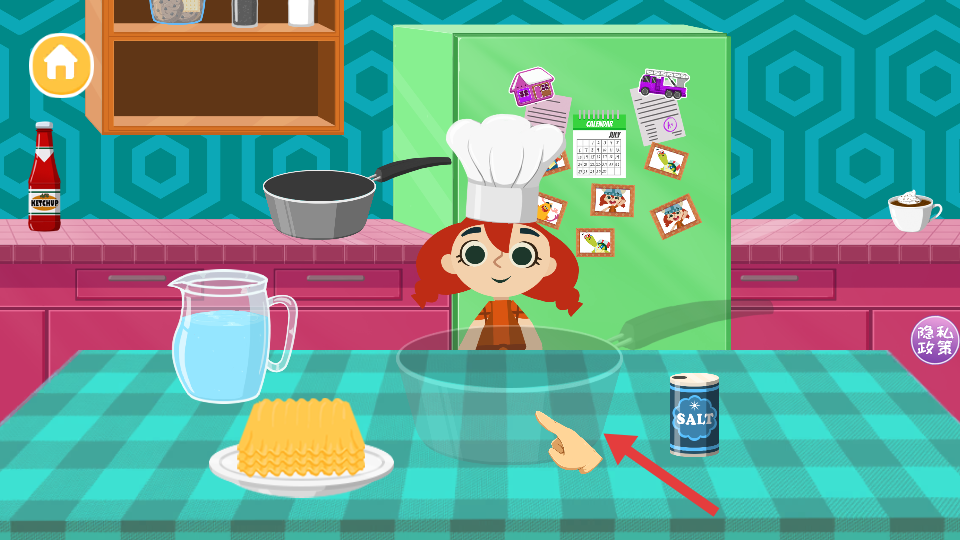 1、食材處理操作:在食材準備階段,點擊對應(yīng)食材進行清洗,滑動屏幕完成切割、切絲等處理,按照菜譜要求將食材加工成指定形態(tài)要做好準備。
