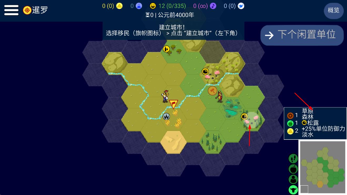 3、讓單位抵達(dá)【松露-森林】區(qū)域,借助【+25%單位防御力】加成,勘察資源助力建城。