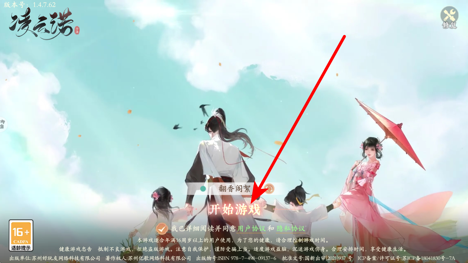 1、新手進入界面,選擇心儀的服務器,點擊開始游戲,仔細閱讀并勾選同意用戶與隱私協(xié)議,正式踏入詩意大啟世界,開啟國風養(yǎng)成冒險第一步。