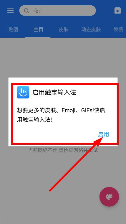 1.彈出啟用觸寶輸入法提示框時,點擊啟用,進入管理鍵盤頁面。