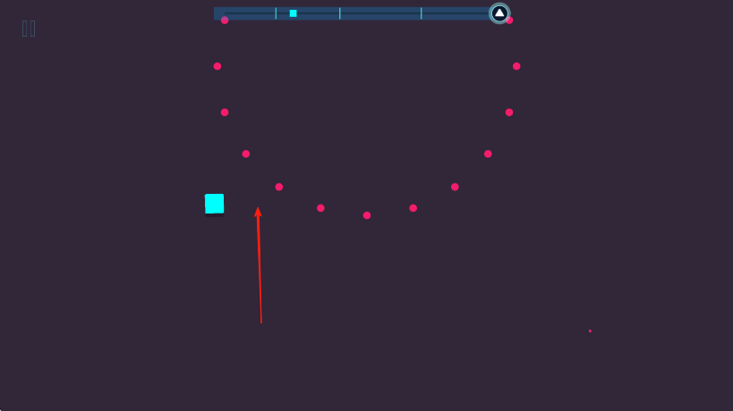 1、操控藍色方塊,通過點擊滑動屏幕,讓方塊沿紅色點軌跡移動,每經過一個紅點算有效推進。