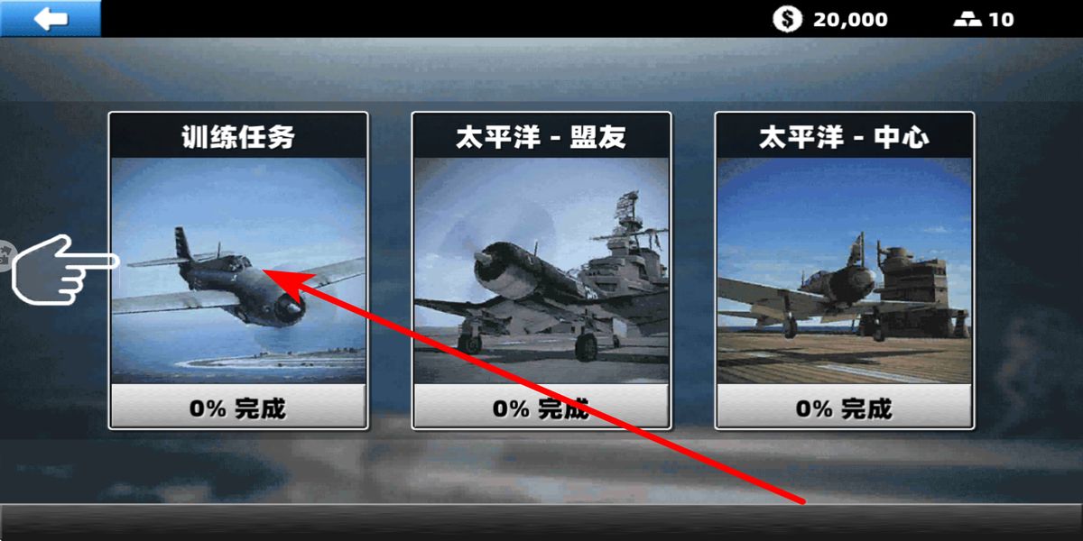1、進(jìn)入后點(diǎn)擊戰(zhàn)役模式,跳轉(zhuǎn)任務(wù)選擇界面,有訓(xùn)練任務(wù)、太平洋盟友等不同類型,根據(jù)飛機(jī)性能與自身水平,選適合任務(wù),開(kāi)啟挑戰(zhàn)準(zhǔn)備。