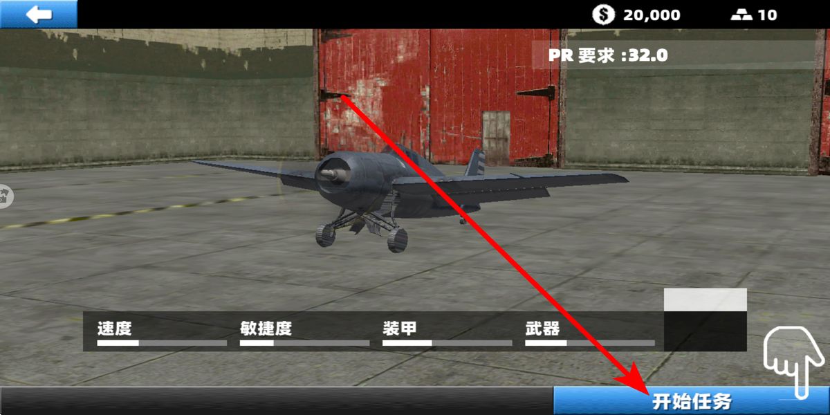 2、選定任務(wù)后,查看飛機(jī)PR要求與速度、敏捷度等屬性,確認(rèn)飛機(jī)滿足任務(wù)條件,若不足可去機(jī)庫(kù)升級(jí)或換飛機(jī),保障任務(wù)執(zhí)行順暢。