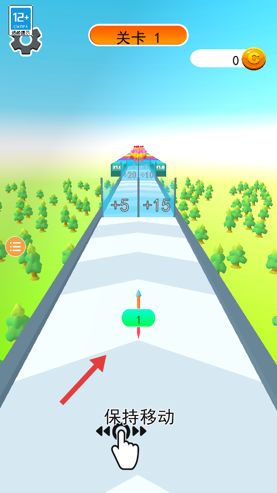 1、進入游戲后,在初始賽道熟悉飛劍操控方式,通過滑動屏幕控制飛劍左右移動,躲避首個障礙物,同時嘗試點擊屏幕發(fā)射箭矢擊中前方基礎(chǔ)敵人。