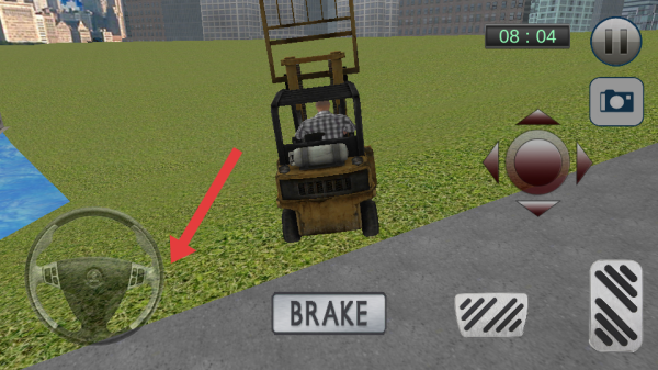 1、操作叉車時(shí),左手操控左側(cè)方向盤,控制叉車行駛方向;右手點(diǎn)擊右側(cè)方向按鈕,按下剎車鍵,在草地、道路等場(chǎng)景靈活行動(dòng)。