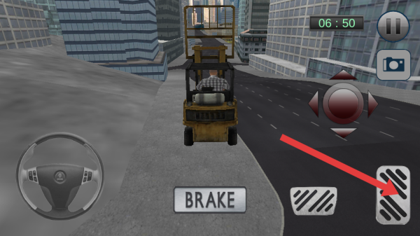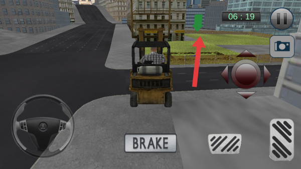 3、執(zhí)行運(yùn)輸任務(wù)時(shí),依據(jù)場(chǎng)景里的綠色箭頭提示,操作方向按鈕調(diào)整位置,用剎車鍵把控停車時(shí)機(jī),在規(guī)定時(shí)間內(nèi)抵達(dá)指定地點(diǎn)。