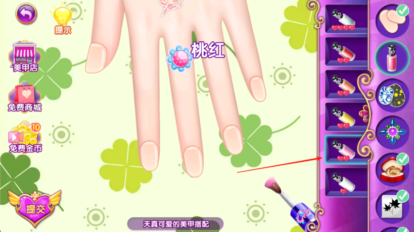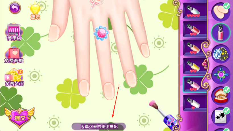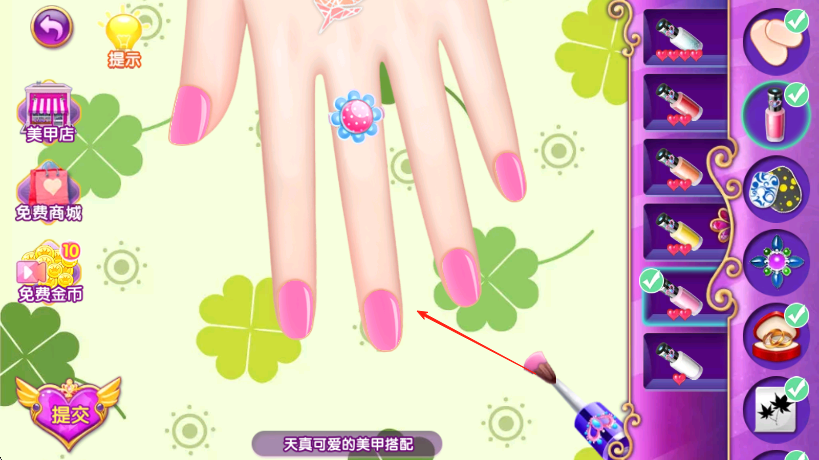1、進入游戲界面,明確美甲主題,如天真可愛的美甲搭配,構思美甲風格。
