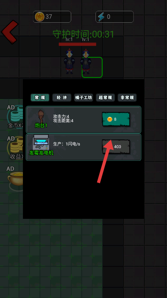 2、在場(chǎng)景空白區(qū)域放置防御設(shè)施,根據(jù)猛鬼出現(xiàn)路線調(diào)整布局,同時(shí)通過(guò)擊敗敵人獲取資源升級(jí)設(shè)施。