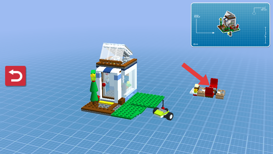 1、進(jìn)入搭建界面,參照右上角藍(lán)圖,識(shí)別待拼裝組件,選取對(duì)應(yīng)樂高積木,按紅箭頭指引位置,精準(zhǔn)拼接,完善建筑的設(shè)施。