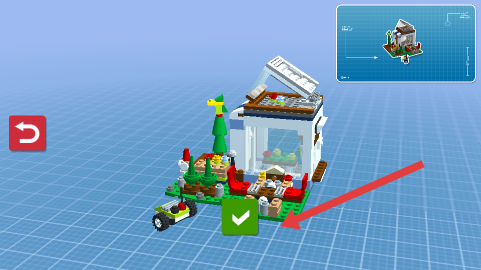 2、完成搭建后,點(diǎn)擊綠色對(duì)勾確認(rèn),將搭建好的樂高場(chǎng)景同步至島嶼地圖,解鎖新建筑外觀與互動(dòng)區(qū)域,為探索玩法做準(zhǔn)備。