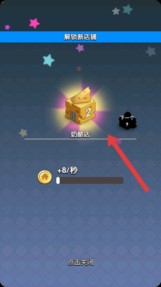 1、優(yōu)先關(guān)注解鎖新店鋪提示,消耗對應(yīng)資源金幣、鉆石等解鎖,新店鋪可增加每秒收益,加速金幣積累。