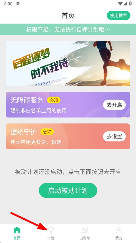 1、打開(kāi)軟件,點(diǎn)擊底部計(jì)劃,進(jìn)入計(jì)劃頁(yè)面。