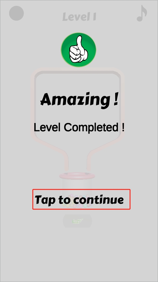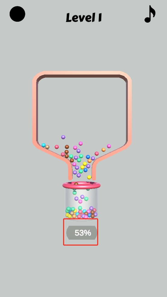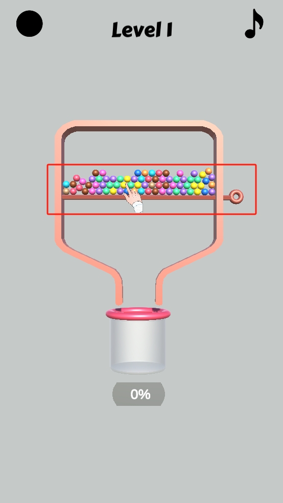 3、所有小球落入玻璃瓶后即可通關(guān),點(diǎn)擊屏幕下方的按鈕,進(jìn)入下一關(guān),挑戰(zhàn)更復(fù)雜小球?qū)Я麝P(guān)卡,解鎖新難度。