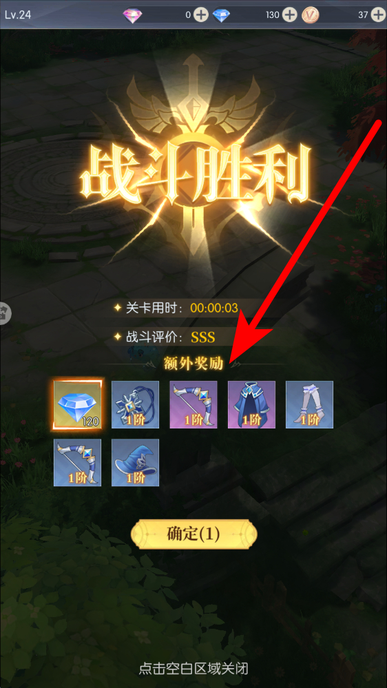 2、戰(zhàn)斗勝利后,點擊領(lǐng)取額外獎勵,包含鉆石、裝備等資源,這些物資可用于角色養(yǎng)成、裝備打造,快速提升戰(zhàn)力,應(yīng)對更高難度內(nèi)容。