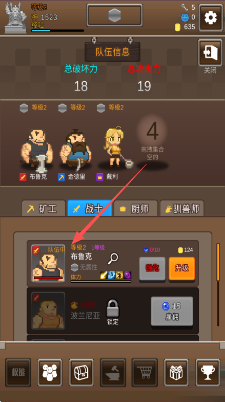 1、進入游戲,查看隊伍信息界面,了解隊員的總破壞力和總攻擊力,可通過強化提升隊員能力。