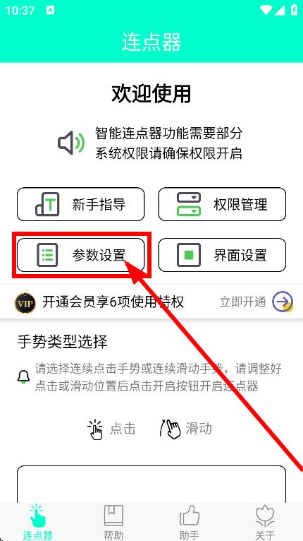 1、在智能連點(diǎn)器界面,點(diǎn)擊參數(shù)設(shè)置,進(jìn)入?yún)?shù)設(shè)置頁面。