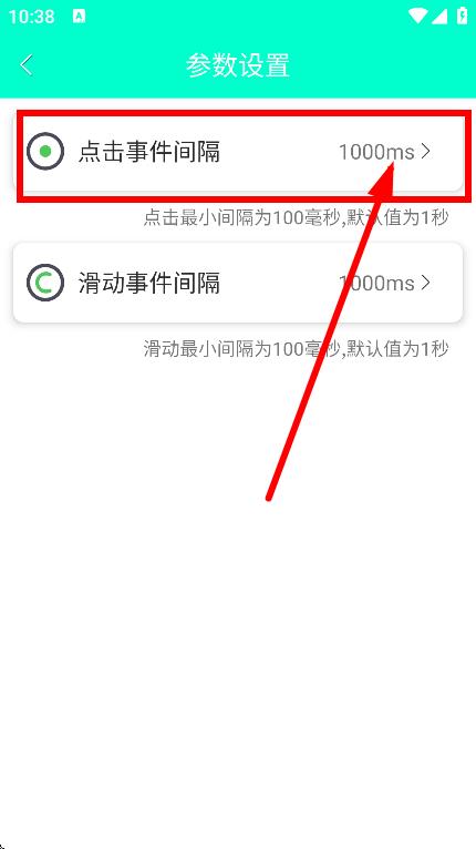 2、在參數(shù)設(shè)置頁面,點(diǎn)擊事件間隔,彈出時間間隔設(shè)置框。