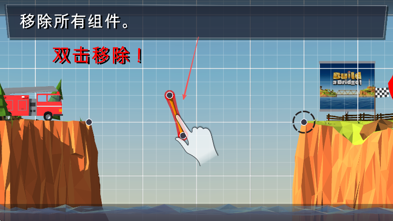 1、進(jìn)入游戲看清上方提示移除所有組件,雙擊移除、按要求操作清理界面為建橋做準(zhǔn)備。