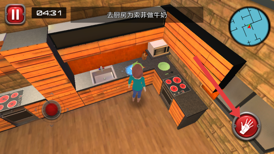 2、對(duì)話結(jié)束后,按任務(wù)提示前往廚房,點(diǎn)擊獲取牛奶制作材料,長(zhǎng)按右側(cè)完成牛奶制作,準(zhǔn)備給索菲送去。