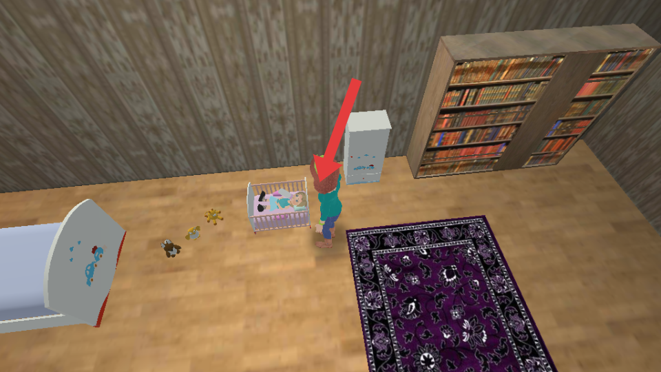 3、制作好牛奶后,先去嬰兒房將嬰兒平穩(wěn)放入嬰兒床,攜帶牛奶找到索菲完成,按對(duì)話-家務(wù)-育兒的流程推進(jìn)。