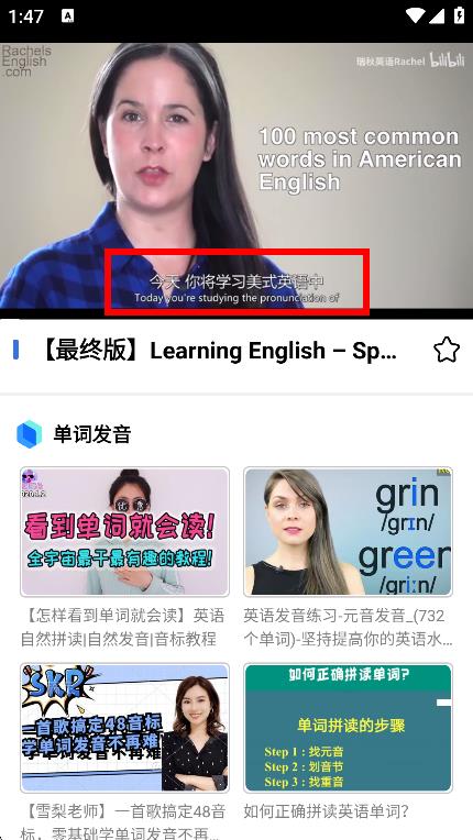 2、在視頻播放頁(yè)面,可觀看視頻學(xué)習(xí)美式英語發(fā)音。