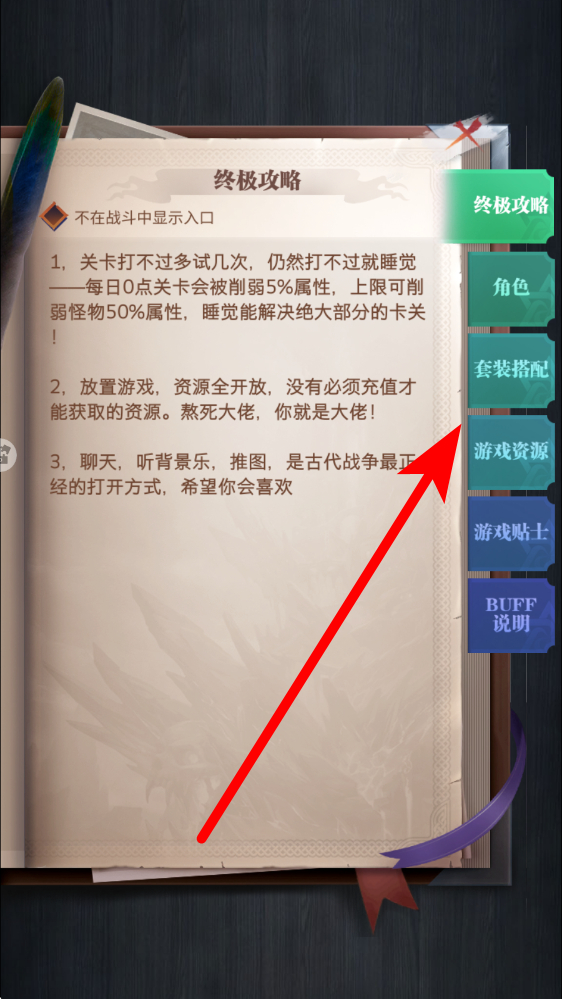 3、遇到卡關或想優(yōu)化玩法時,打開終極攻略等界面,查看關卡削弱機制資源獲取玩法建議等內容,借助攻略調整策略,攻克難關,提升游玩效率。