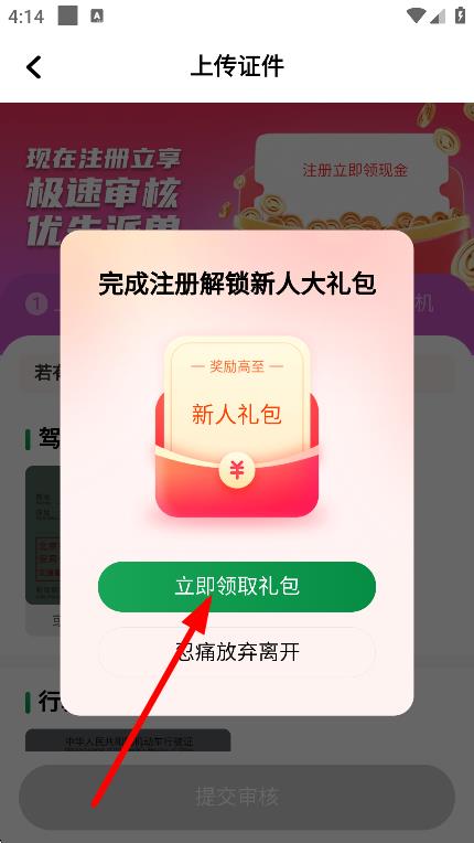 3、完成注冊后,在彈出的禮包領(lǐng)取彈窗中,點擊立即領(lǐng)取禮包,領(lǐng)取新人禮包。