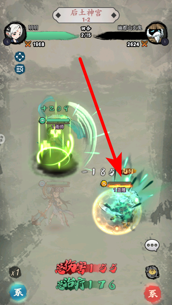 2、在探險(xiǎn)界面選后土神宮等關(guān)卡,戰(zhàn)斗前布陣,將雨師風(fēng)伯等仙靈安排至合適位置,戰(zhàn)斗中仙靈自動(dòng)普攻,適時(shí)釋放技能,利用克制關(guān)系盤雕受克制打擊敵人。
