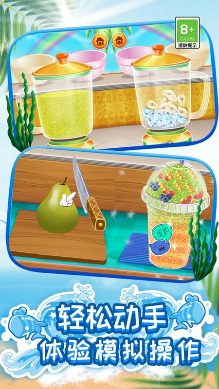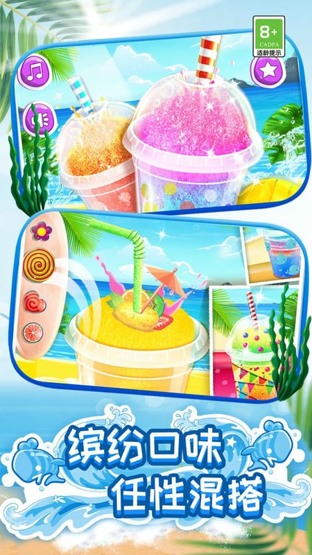 3、豐富食材選擇:提供數(shù)十種新鮮水果、多樣配料與模具樣式,玩家可自由搭配組合,制作出不同口味、不同造型果汁冰淇淋滿足需求。