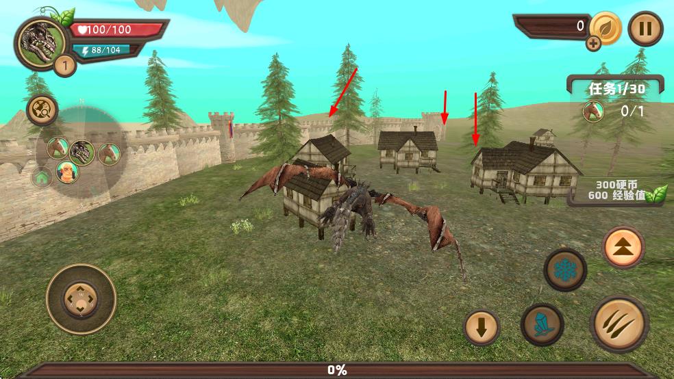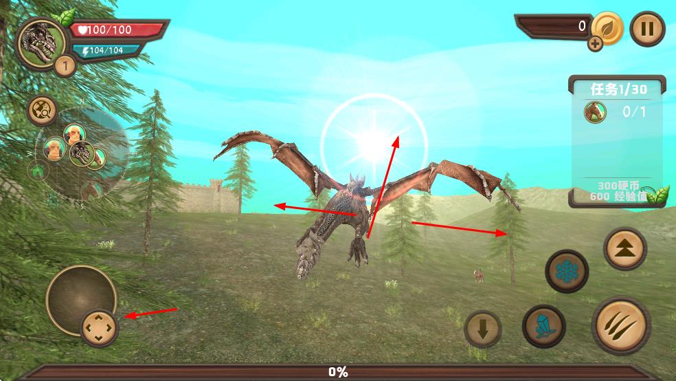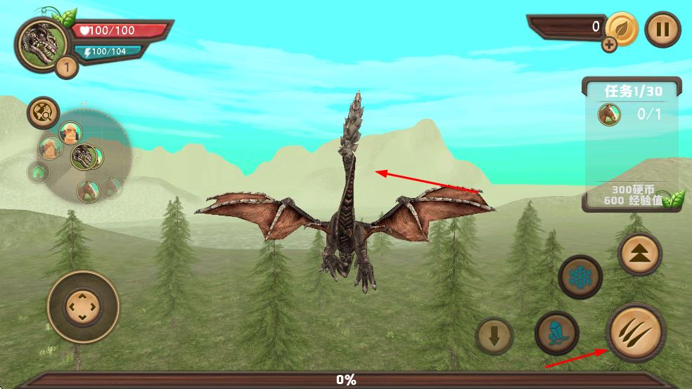 1、操控左側(cè)搖桿移動龍身,切換技能欄選擇攻擊手段,如爪擊技能,開啟冒險戰(zhàn)斗。