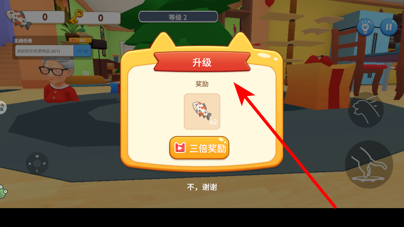 3、完成任務(wù)積累經(jīng)驗(yàn)后,彈出升級(jí)提示,可選擇領(lǐng)取小魚(yú)獎(jiǎng)勵(lì)或三倍獎(jiǎng)勵(lì),領(lǐng)取獎(jiǎng)勵(lì)后等級(jí)提升,解鎖新任務(wù)與內(nèi)容,持續(xù)拓展游戲體驗(yàn)。