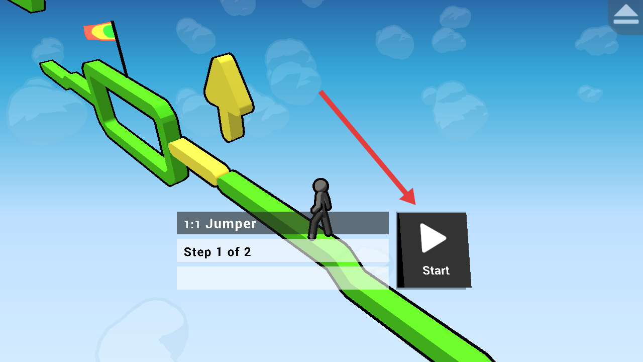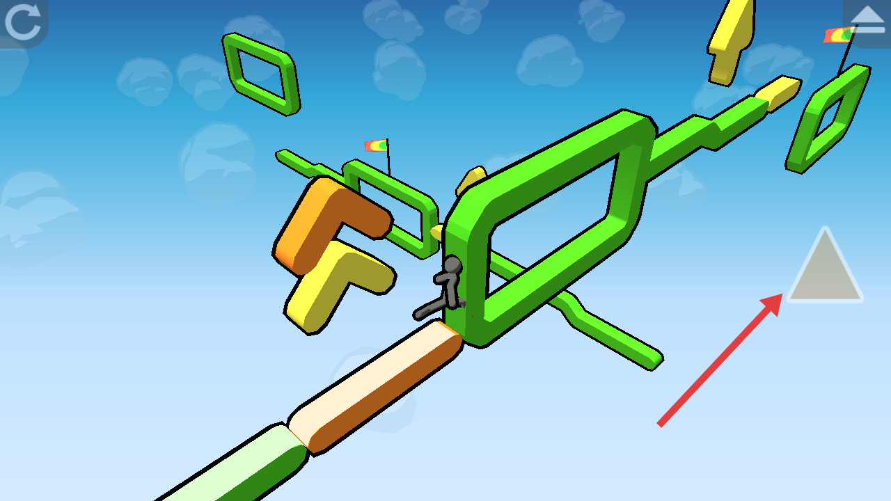 1、點(diǎn)擊Start開啟關(guān)卡,操控火柴人沿彩色管道跑跳前進(jìn),遇箭頭指引、障礙阻攔,依提示操作,維持節(jié)奏前行。