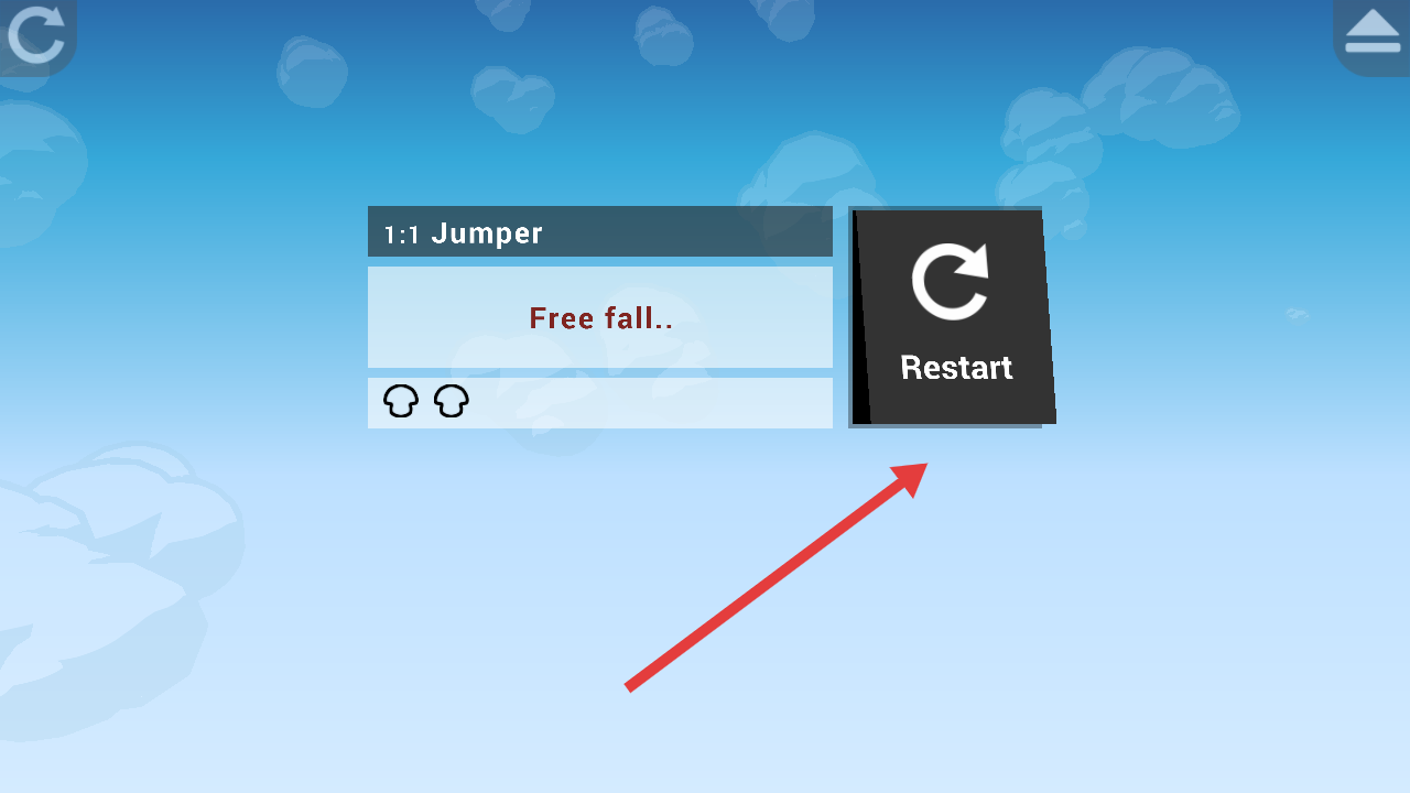 3、若挑戰(zhàn)失敗,點(diǎn)擊Restart重新開始,重復(fù)跑跳、避障流程,向著終點(diǎn)旗幟進(jìn)發(fā),完成1:1Jumper關(guān)卡。